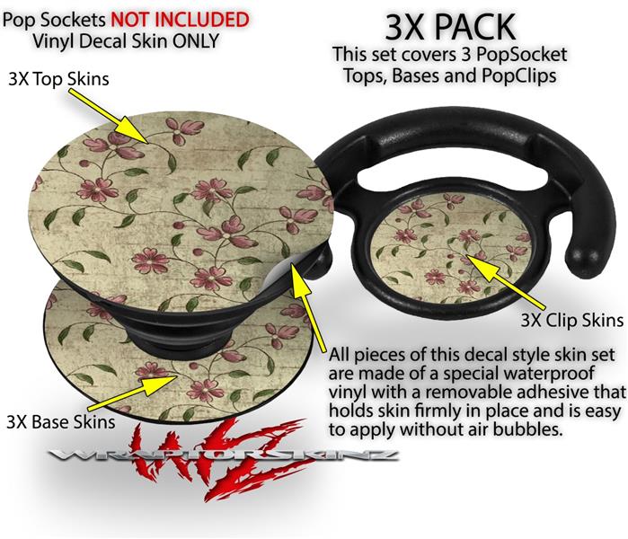 Decal Style Vinyl Skin Wrap 3 Pack for PopSockets Flowers and Berries Pink (POPSOCKET NOT INCLUDED)