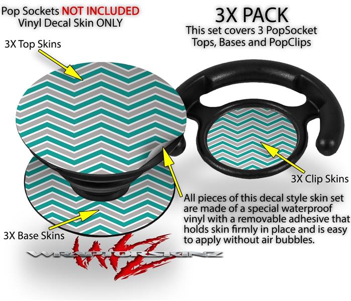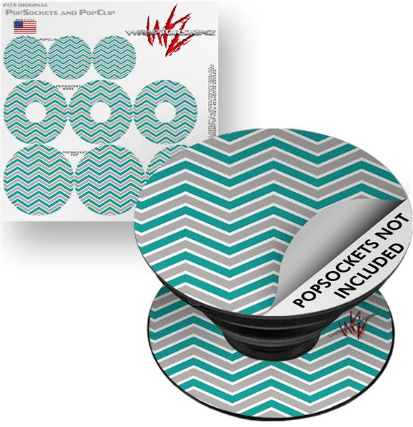 Decal Style Vinyl Skin Wrap 3 Pack for PopSockets Zig Zag Teal and Gray (POPSOCKET NOT INCLUDED)