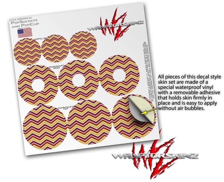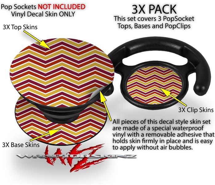 Decal Style Vinyl Skin Wrap 3 Pack for PopSockets Zig Zag Yellow Burgundy Orange (POPSOCKET NOT INCLUDED)