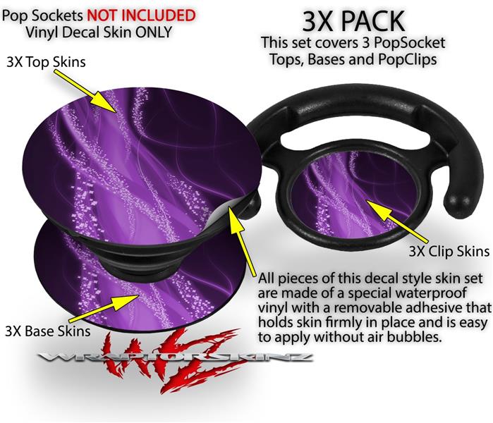Decal Style Vinyl Skin Wrap 3 Pack for PopSockets Mystic Vortex Purple (POPSOCKET NOT INCLUDED)