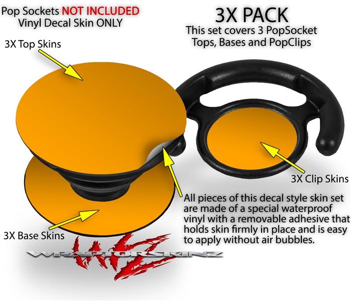 Decal Style Vinyl Skin Wrap 3 Pack for PopSockets Solids Collection Orange (POPSOCKET NOT INCLUDED)