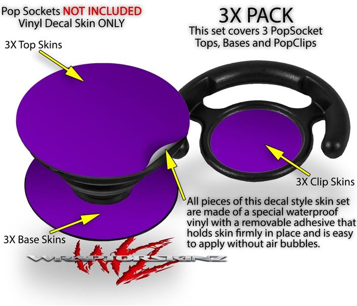 Decal Style Vinyl Skin Wrap 3 Pack for PopSockets Solids Collection Purple (POPSOCKET NOT INCLUDED)