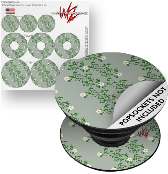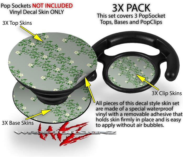 Decal Style Vinyl Skin Wrap 3 Pack for PopSockets Victorian Design Green (POPSOCKET NOT INCLUDED)