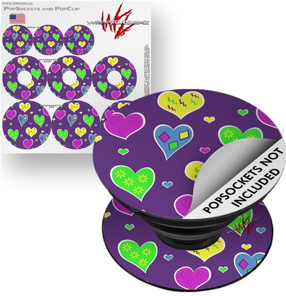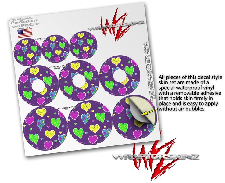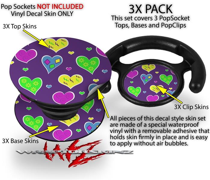 Decal Style Vinyl Skin Wrap 3 Pack for PopSockets Crazy Hearts (POPSOCKET NOT INCLUDED)