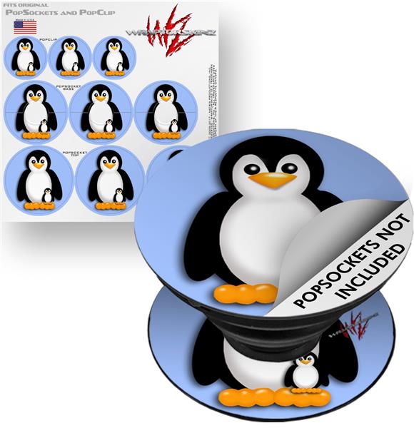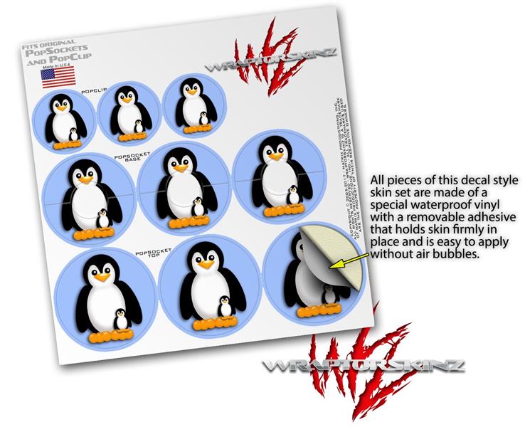 Decal Style Vinyl Skin Wrap 3 Pack for PopSockets Penguins on Blue (POPSOCKET NOT INCLUDED)