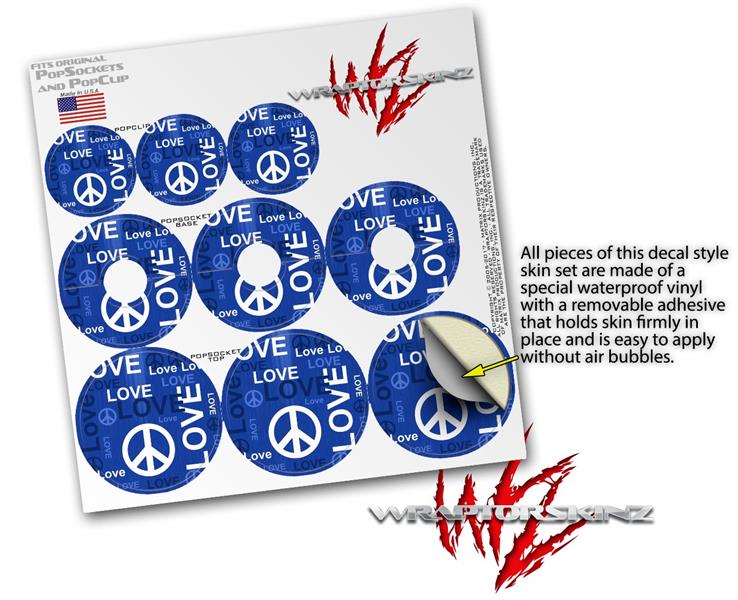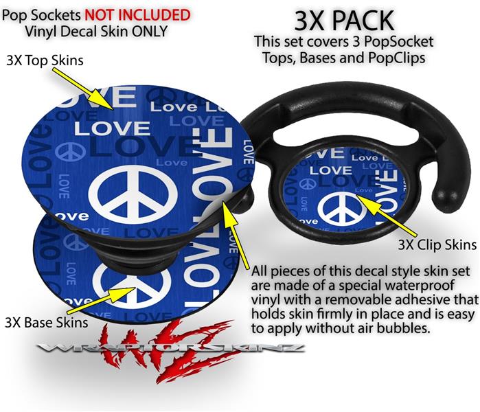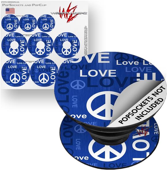 Decal Style Vinyl Skin Wrap 3 Pack for PopSockets Love and Peace Blue (POPSOCKET NOT INCLUDED)