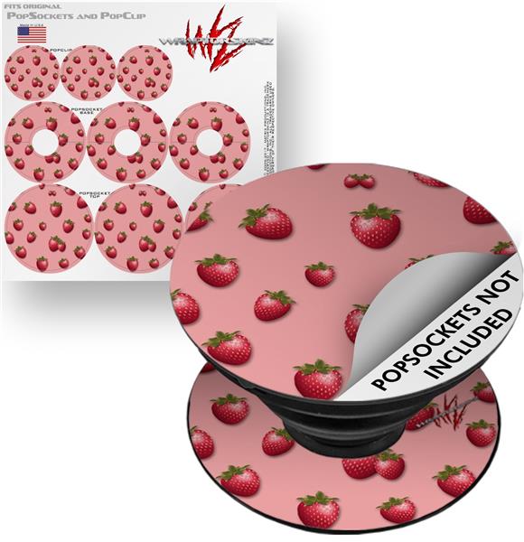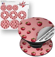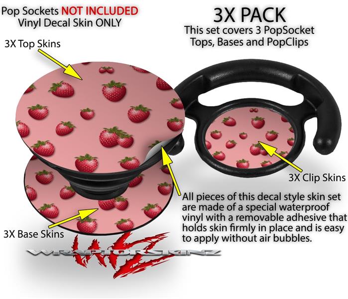 Decal Style Vinyl Skin Wrap 3 Pack for PopSockets Strawberries on Pink (POPSOCKET NOT INCLUDED)