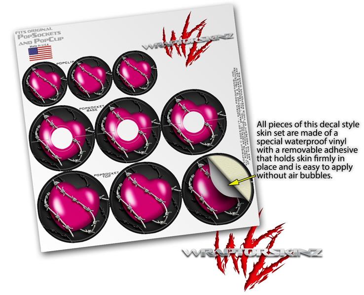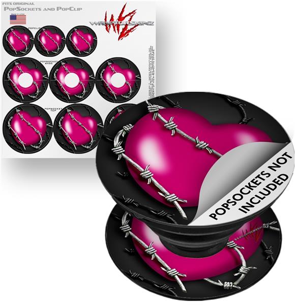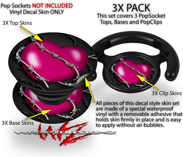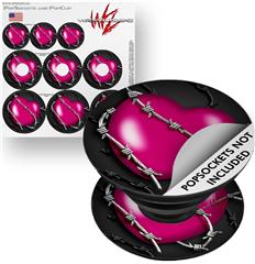 Decal Style Vinyl Skin Wrap 3 Pack for PopSockets Barbwire Heart Hot Pink (POPSOCKET NOT INCLUDED)