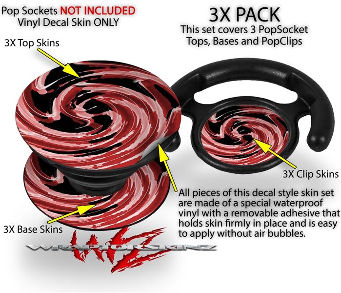 Decal Style Vinyl Skin Wrap 3 Pack for PopSockets Alecias Swirl 02 Red (POPSOCKET NOT INCLUDED)