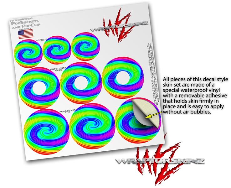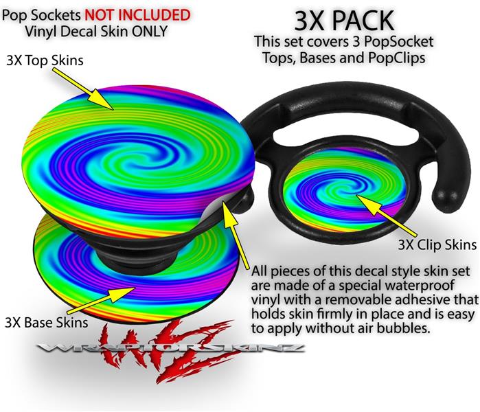 Decal Style Vinyl Skin Wrap 3 Pack for PopSockets Rainbow Swirl (POPSOCKET NOT INCLUDED)