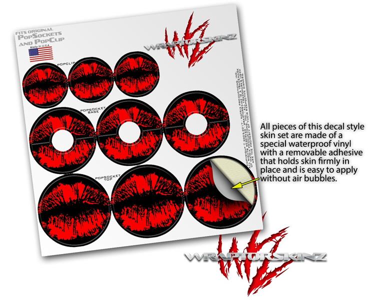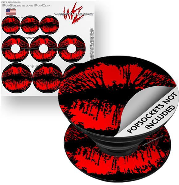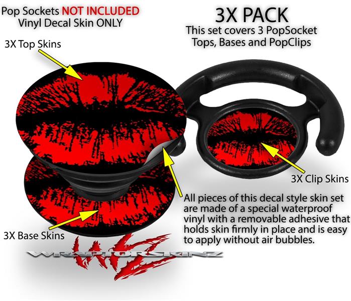 Decal Style Vinyl Skin Wrap 3 Pack for PopSockets Big Kiss Lips Red on Black (POPSOCKET NOT INCLUDED)