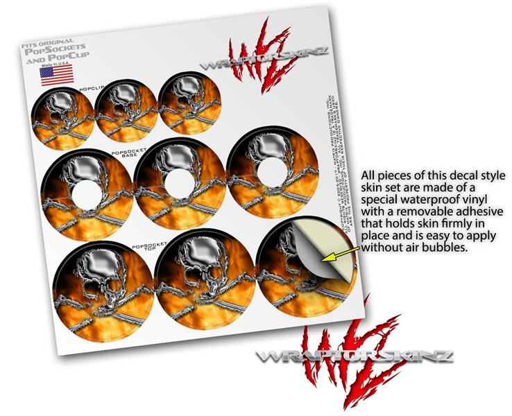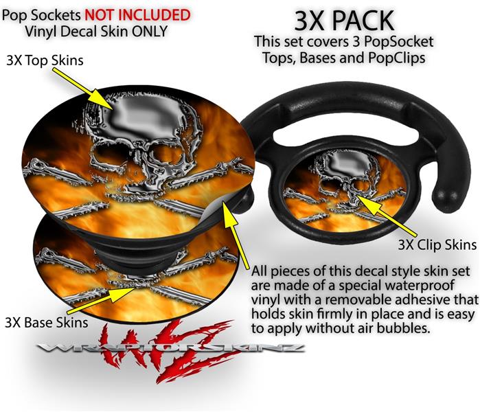Decal Style Vinyl Skin Wrap 3 Pack for PopSockets Chrome Skull on Fire (POPSOCKET NOT INCLUDED)