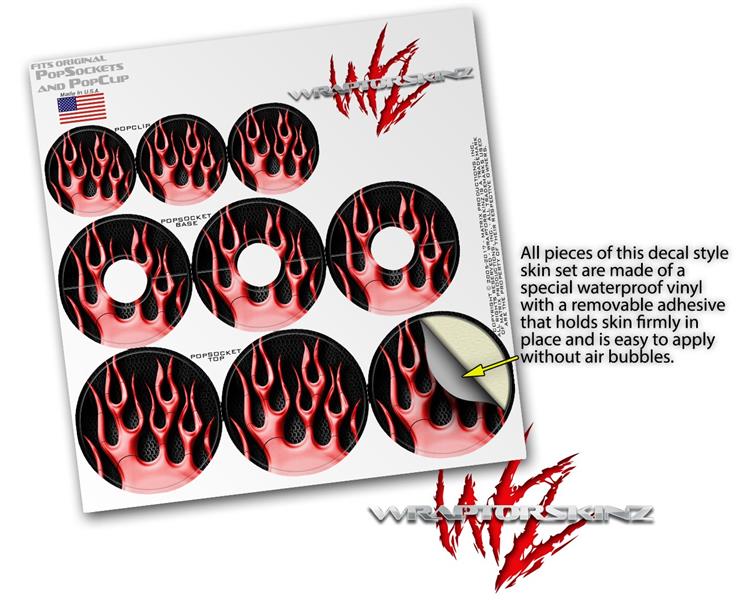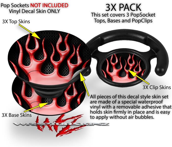 Decal Style Vinyl Skin Wrap 3 Pack for PopSockets Metal Flames Red (POPSOCKET NOT INCLUDED)