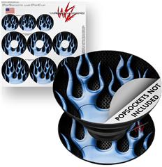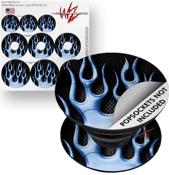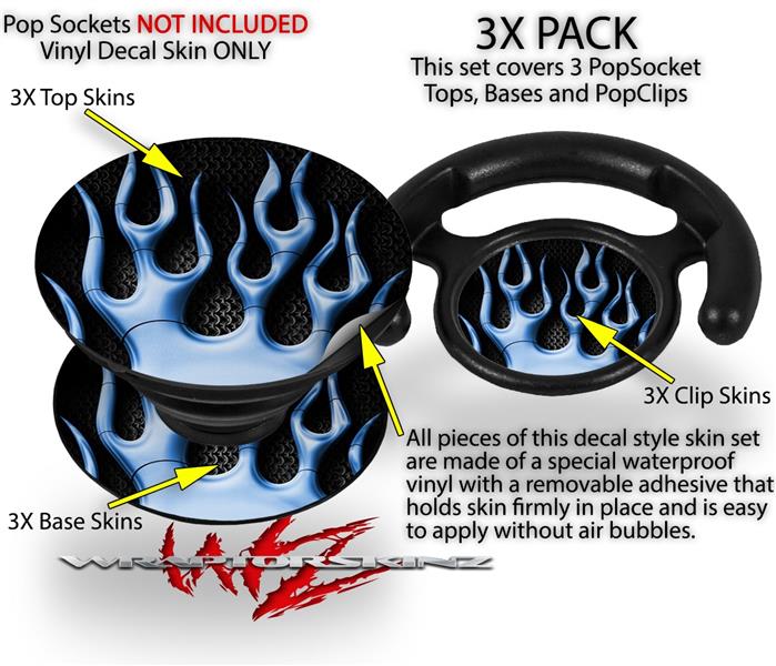 Decal Style Vinyl Skin Wrap 3 Pack for PopSockets Metal Flames Blue (POPSOCKET NOT INCLUDED)