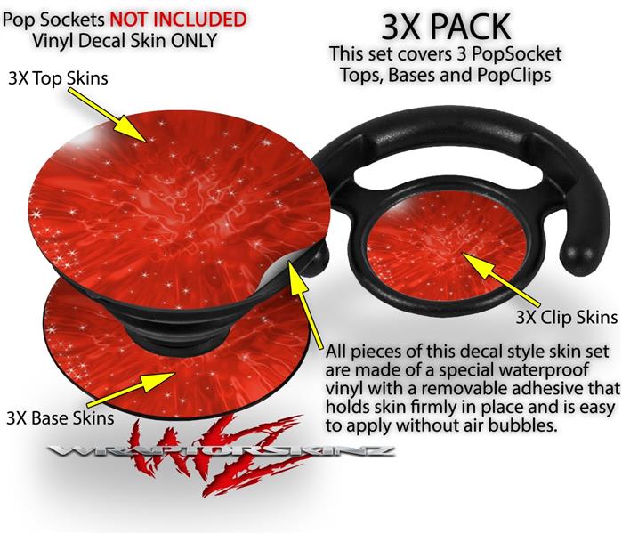 Decal Style Vinyl Skin Wrap 3 Pack for PopSockets Stardust Red (POPSOCKET NOT INCLUDED)