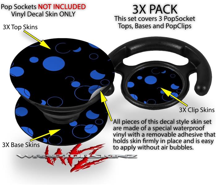 Decal Style Vinyl Skin Wrap 3 Pack for PopSockets Lots of Dots Blue on Black (POPSOCKET NOT INCLUDED)