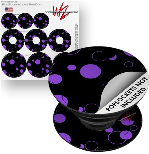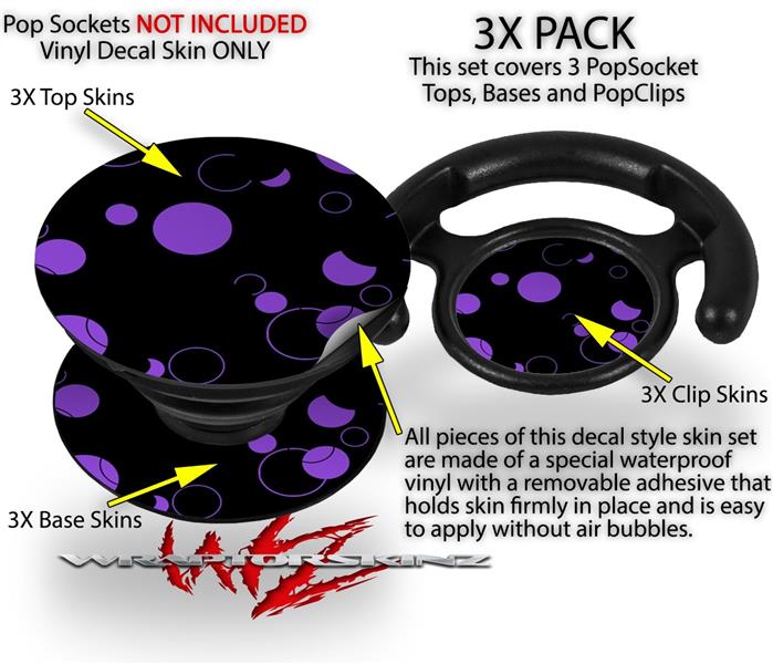 Decal Style Vinyl Skin Wrap 3 Pack for PopSockets Lots of Dots Purple on Black (POPSOCKET NOT INCLUDED)