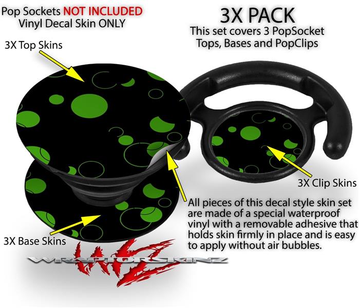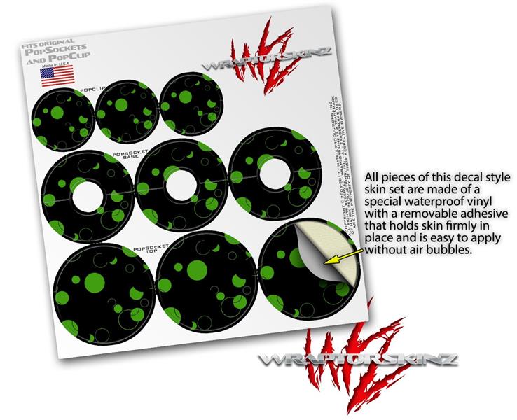 Decal Style Vinyl Skin Wrap 3 Pack for PopSockets Lots of Dots Green on Black (POPSOCKET NOT INCLUDED)
