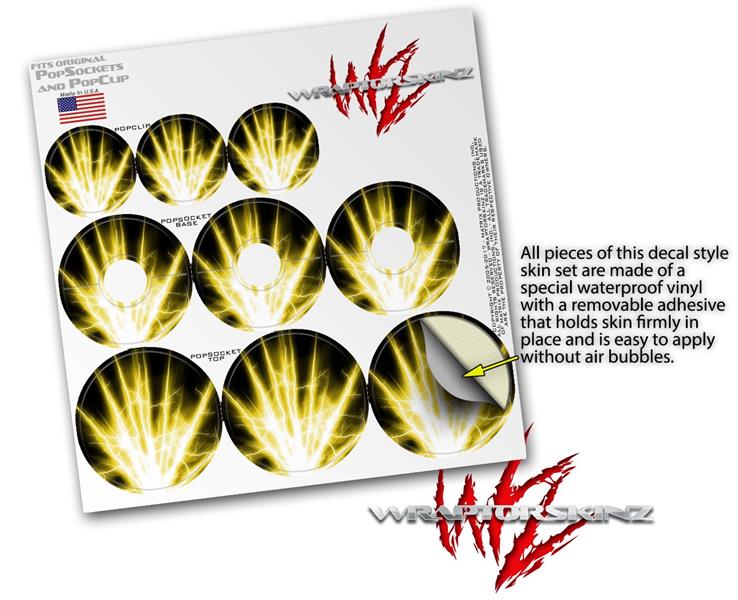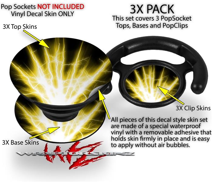 Decal Style Vinyl Skin Wrap 3 Pack for PopSockets Lightning Yellow (POPSOCKET NOT INCLUDED)