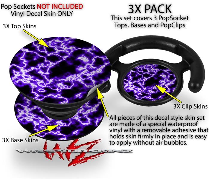 Decal Style Vinyl Skin Wrap 3 Pack for PopSockets Electrify Purple (POPSOCKET NOT INCLUDED)