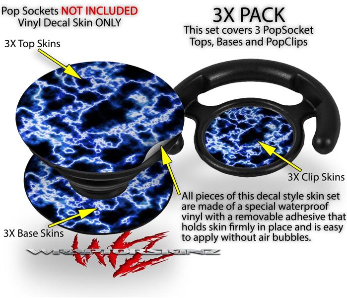 Decal Style Vinyl Skin Wrap 3 Pack for PopSockets Electrify Blue (POPSOCKET NOT INCLUDED)