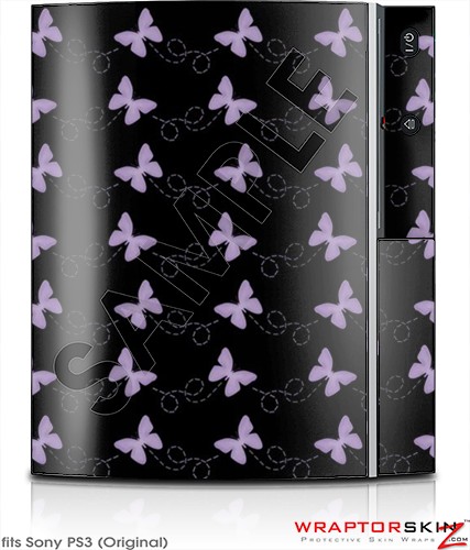 Sony PS3 Skin Pastel Butterflies Purple on Black