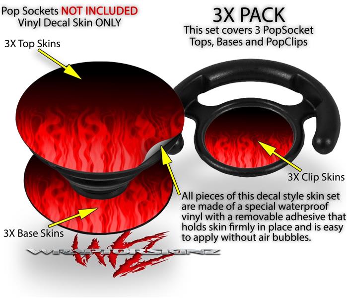 Decal Style Vinyl Skin Wrap 3 Pack for PopSockets Fire Red (POPSOCKET NOT INCLUDED)