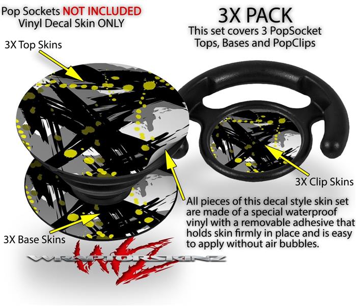 Decal Style Vinyl Skin Wrap 3 Pack for PopSockets Abstract 02 Yellow (POPSOCKET NOT INCLUDED)