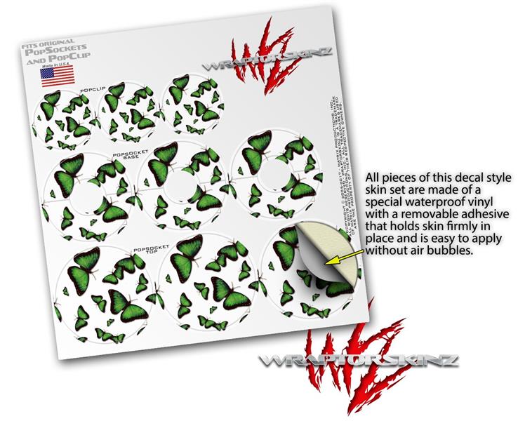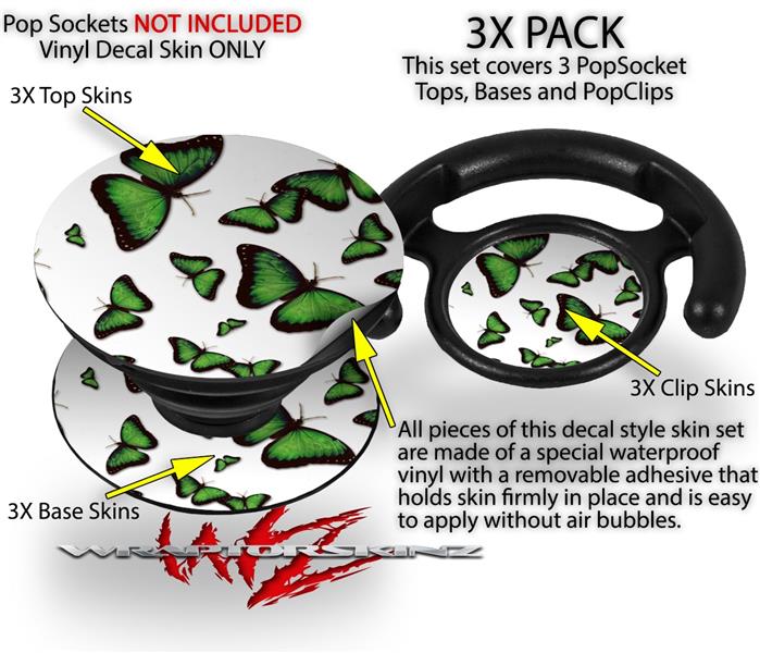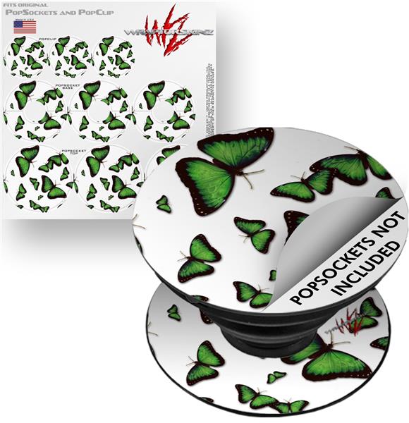 Decal Style Vinyl Skin Wrap 3 Pack for PopSockets Butterflies Green (POPSOCKET NOT INCLUDED)