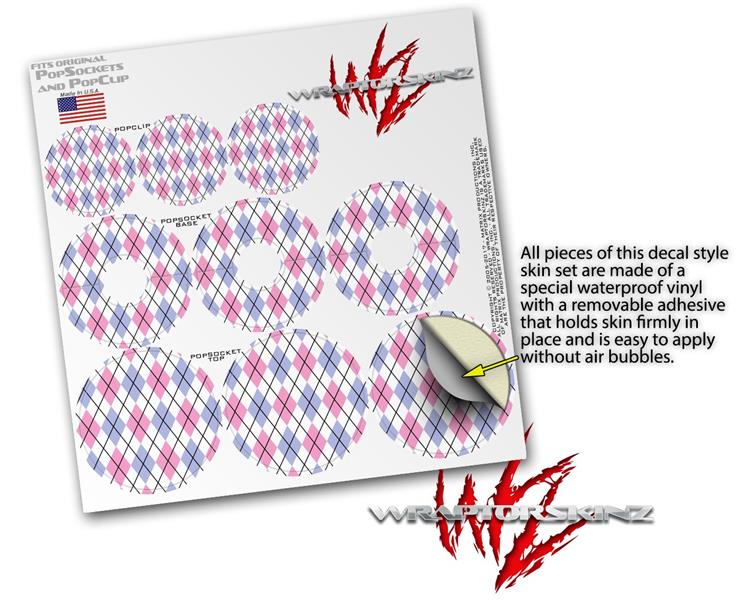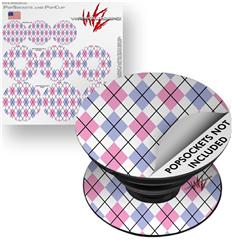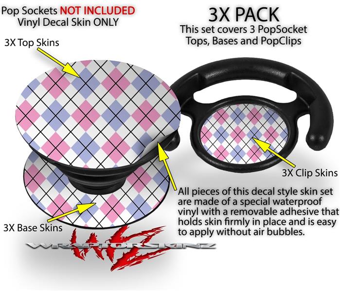 Decal Style Vinyl Skin Wrap 3 Pack for PopSockets Argyle Pink and Blue (POPSOCKET NOT INCLUDED)