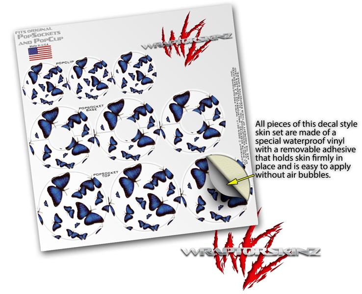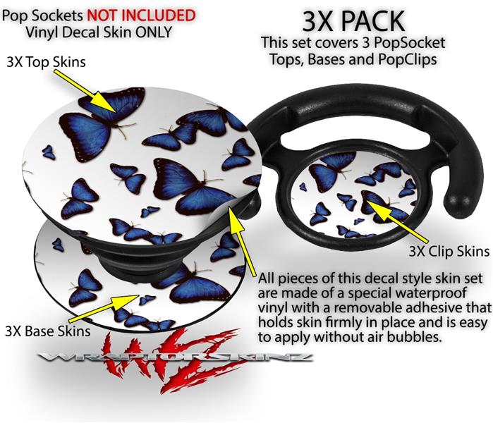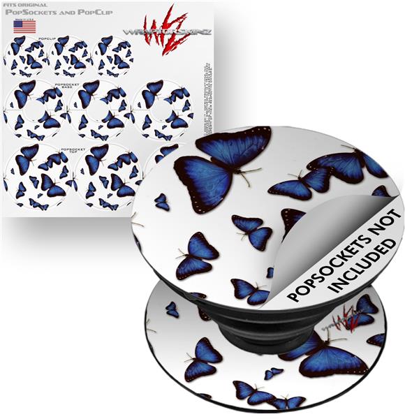 Decal Style Vinyl Skin Wrap 3 Pack for PopSockets Butterflies Blue (POPSOCKET NOT INCLUDED)