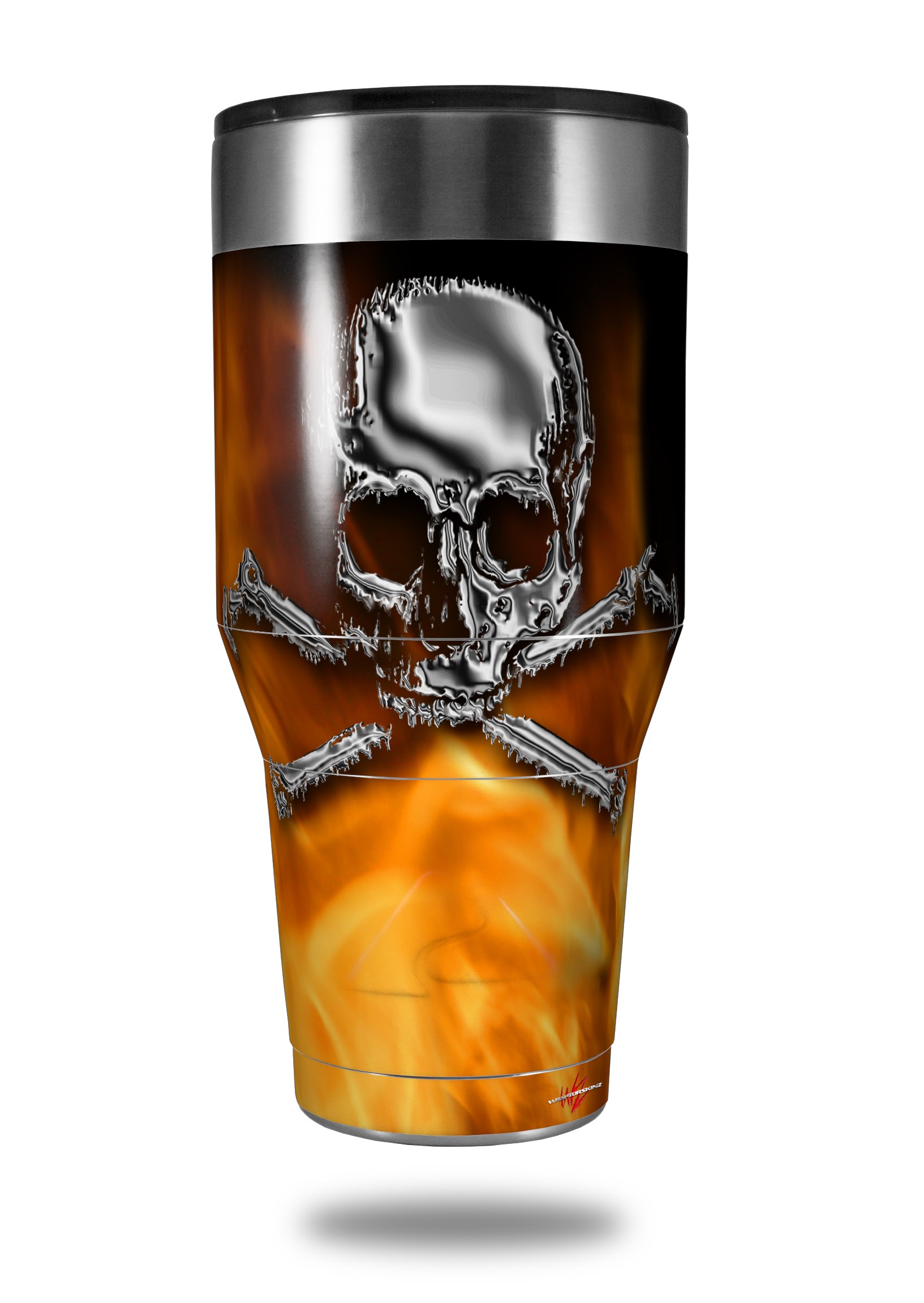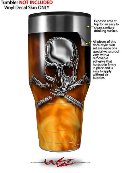 Skin Decal Wrap for Walmart Ozark Trail Tumblers 40oz Chrome Skull on Fire (TUMBLER NOT INCLUDED)