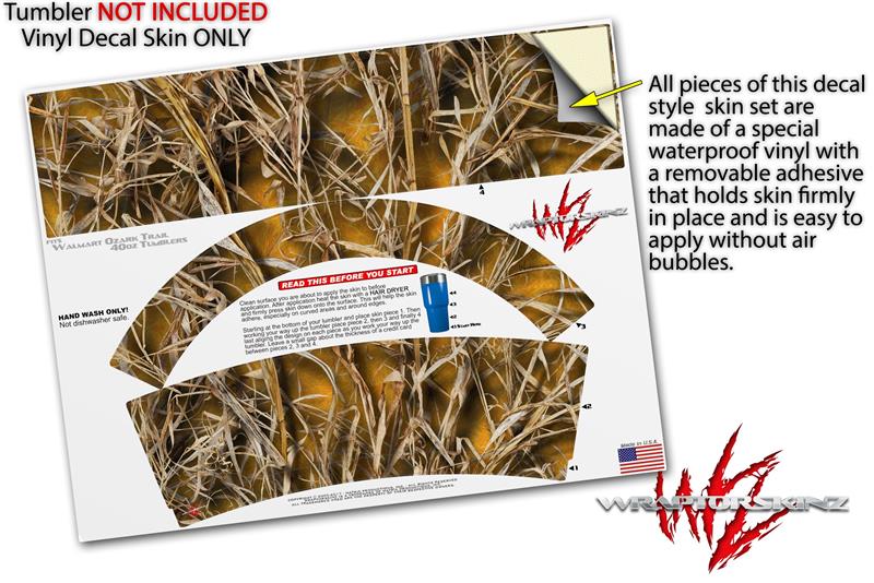 WraptorSkinz® skin wraps for Walmart Ozark Trail Tumblers are printed using superb photo quality designs and vibrant colors printed with special fade resistant inks that last even in direct sun for years. WraptorSkinz® are a composite of two layers of commercial grade materials. The bottom layer is a soft, flexible vinyl with a special removable adhesive that is easily positioned, applied without air bubbles. Next we print the bottom layer with UV protected, fade resistant inks that deliver superb photo quality designs in vibrant colors. Finally we bond a professional grade laminate over the entire skin adding a glossy protective finish.