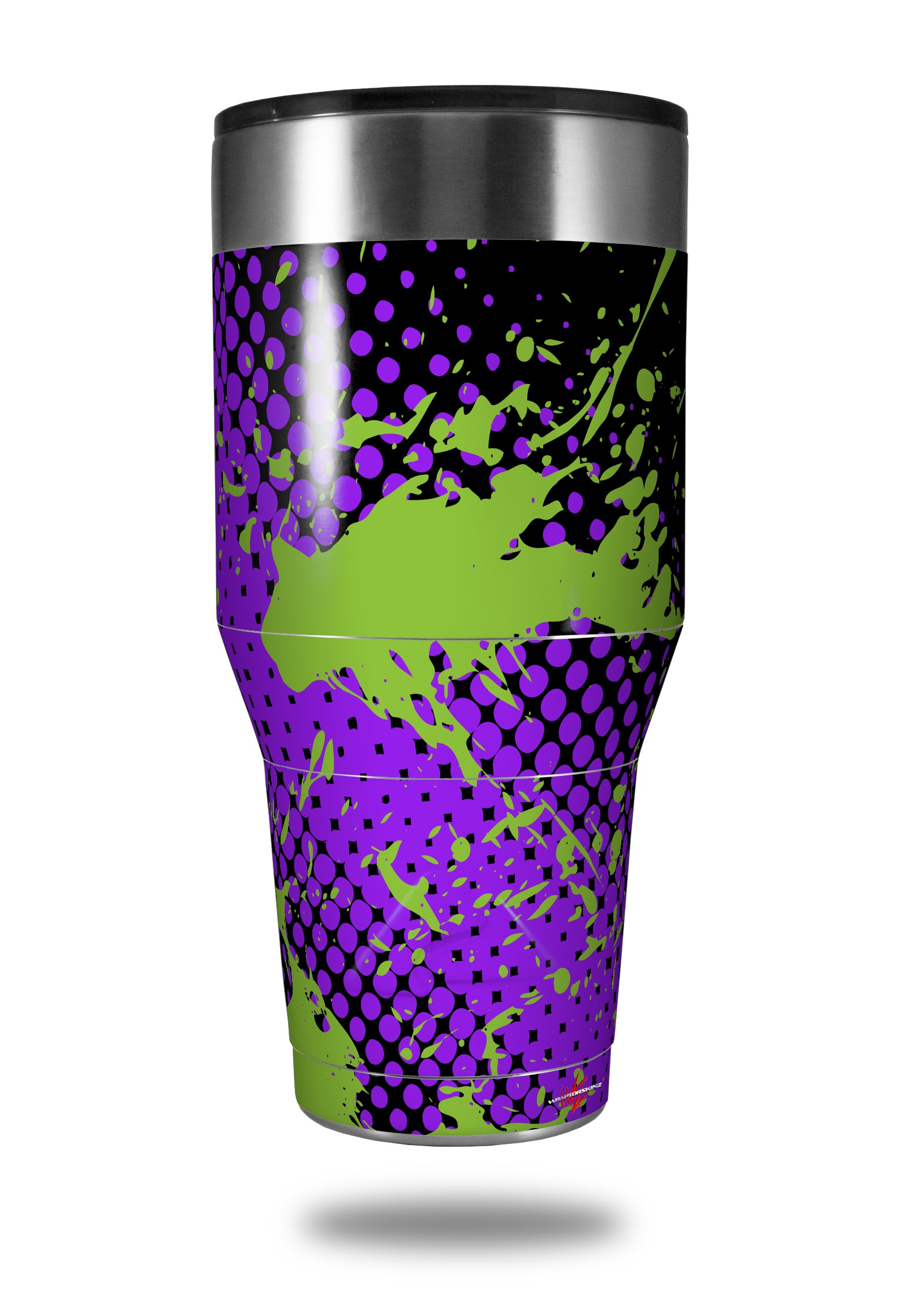 Skin Decal Wrap for Walmart Ozark Trail Tumblers 40oz Halftone Splatter Green Purple (TUMBLER NOT INCLUDED)