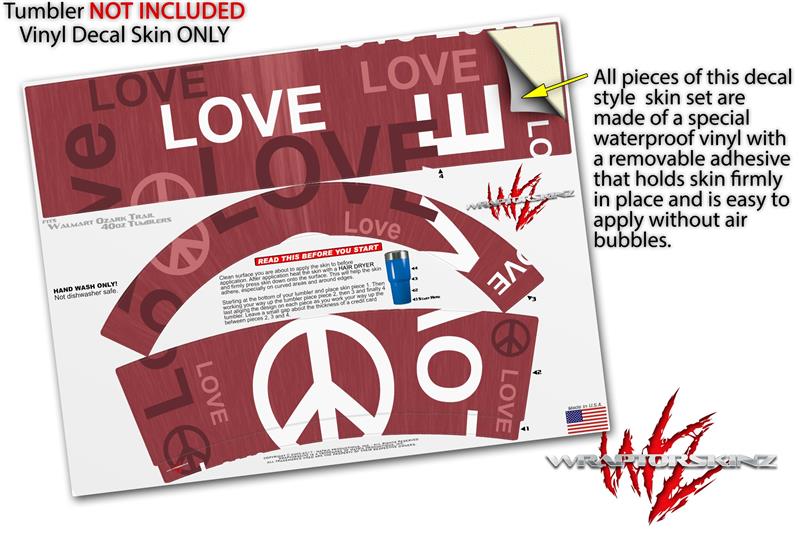 Skin Decal Wrap for Walmart Ozark Trail Tumblers 40oz Love and Peace Pink (TUMBLER NOT INCLUDED)