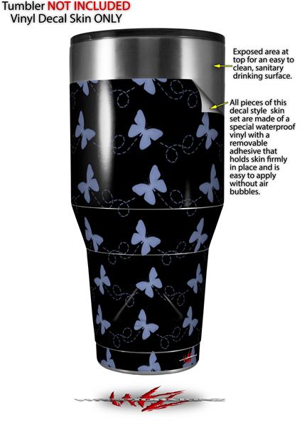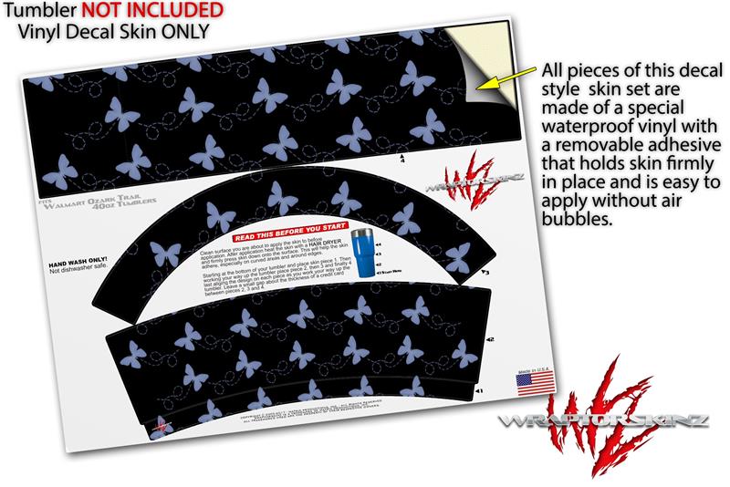 Skin Decal Wrap for Walmart Ozark Trail Tumblers 40oz Pastel Butterflies Blue on Black (TUMBLER NOT INCLUDED)