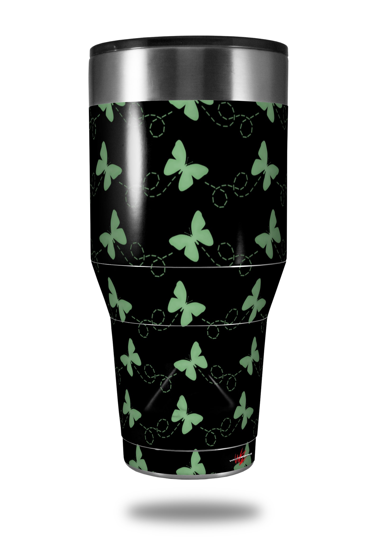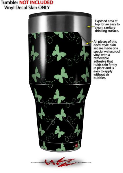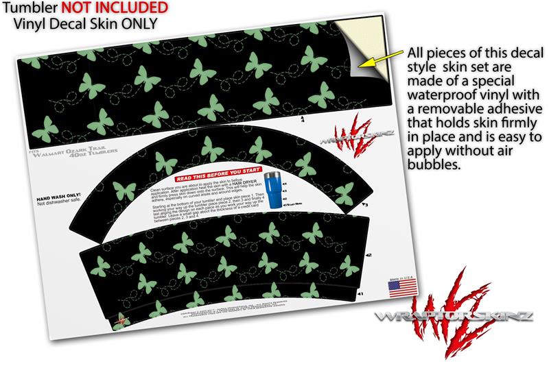 Skin Decal Wrap for Walmart Ozark Trail Tumblers 40oz Pastel Butterflies Green on Black (TUMBLER NOT INCLUDED)