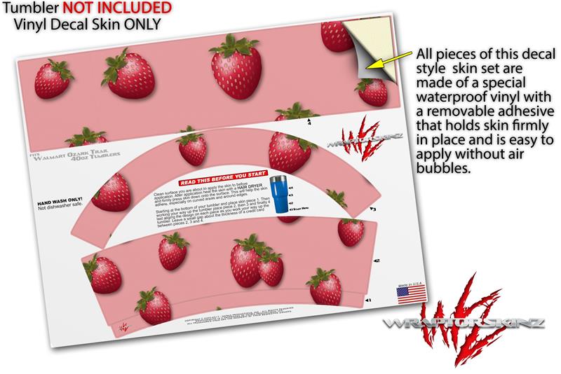 Skin Decal Wrap for Walmart Ozark Trail Tumblers 40oz Strawberries on Pink (TUMBLER NOT INCLUDED)