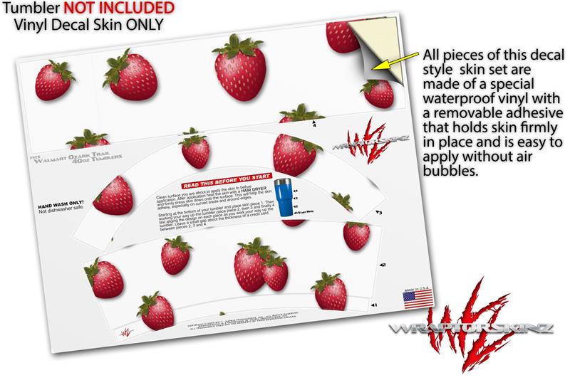 Skin Decal Wrap for Walmart Ozark Trail Tumblers 40oz Strawberries on White (TUMBLER NOT INCLUDED)