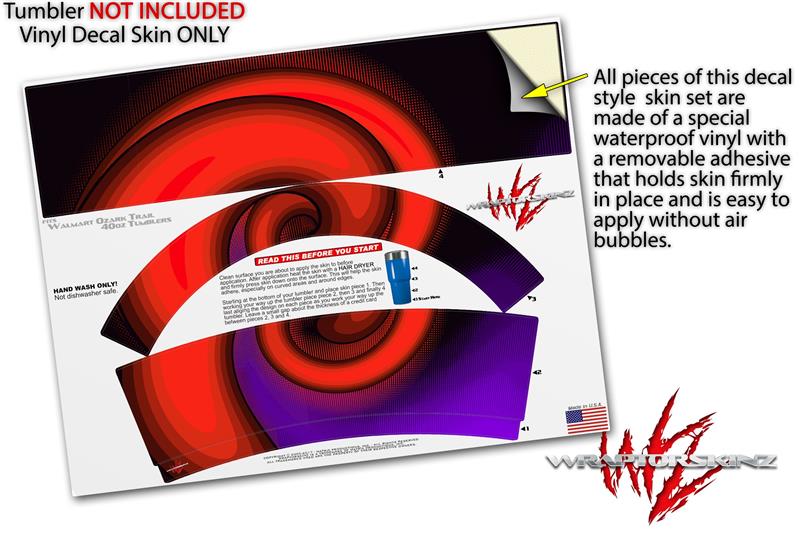 WraptorSkinz® skin wraps for Walmart Ozark Trail Tumblers are printed using superb photo quality designs and vibrant colors printed with special fade resistant inks that last even in direct sun for years. WraptorSkinz® are a composite of two layers of commercial grade materials. The bottom layer is a soft, flexible vinyl with a special removable adhesive that is easily positioned, applied without air bubbles. Next we print the bottom layer with UV protected, fade resistant inks that deliver superb photo quality designs in vibrant colors. Finally we bond a professional grade laminate over the entire skin adding a glossy protective finish.