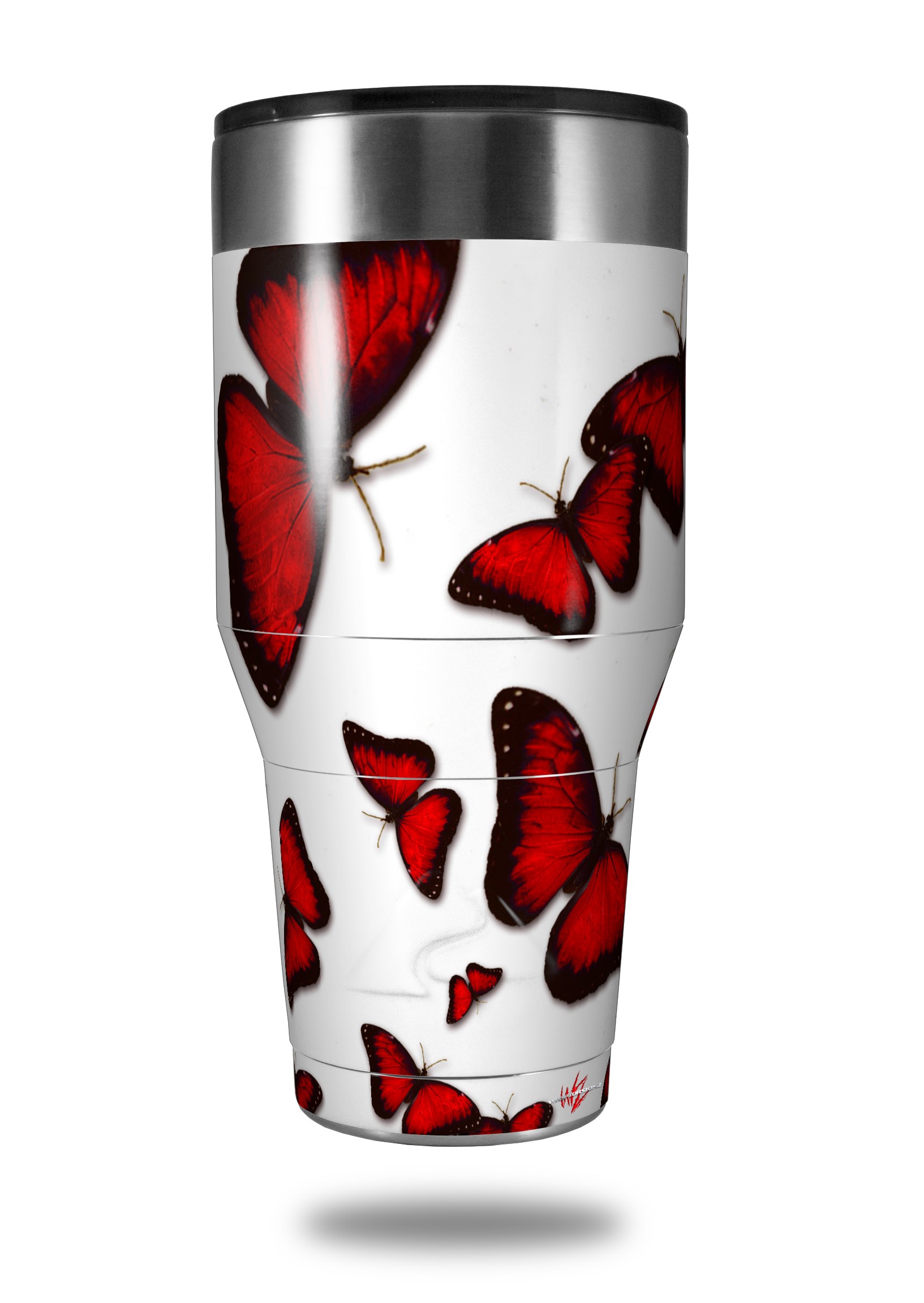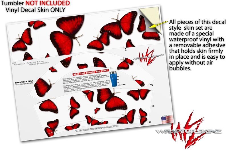 Skin Decal Wrap for Walmart Ozark Trail Tumblers 40oz Butterflies Red (TUMBLER NOT INCLUDED)
