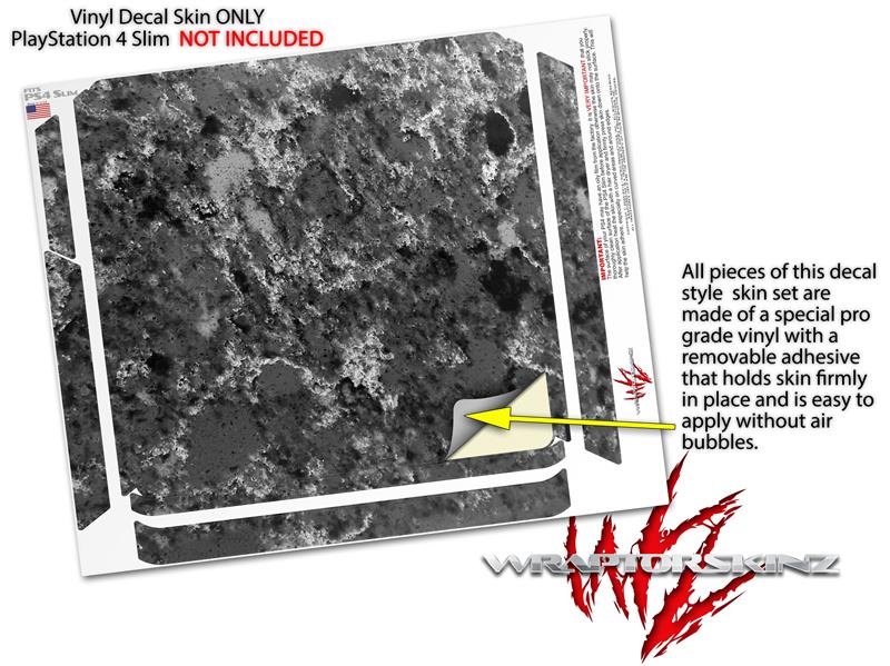 Vinyl Decal Skin Wrap compatible with Sony PlayStation 4 Slim Console Marble Granite 06 Black Gray (PS4 NOT INCLUDED)