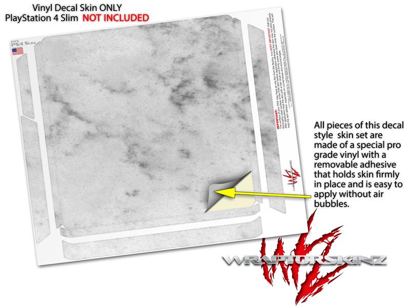 Vinyl Decal Skin Wrap compatible with Sony PlayStation 4 Slim Console Marble Granite 07 White Gray (PS4 NOT INCLUDED)