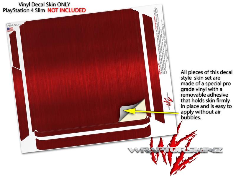 Vinyl Decal Skin Wrap compatible with Sony PlayStation 4 Slim Console Simulated Brushed Metal Red (PS4 NOT INCLUDED)