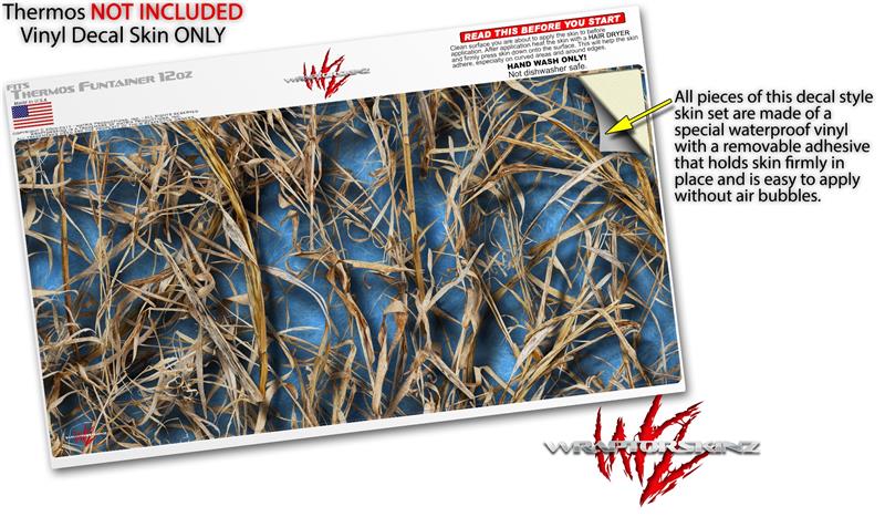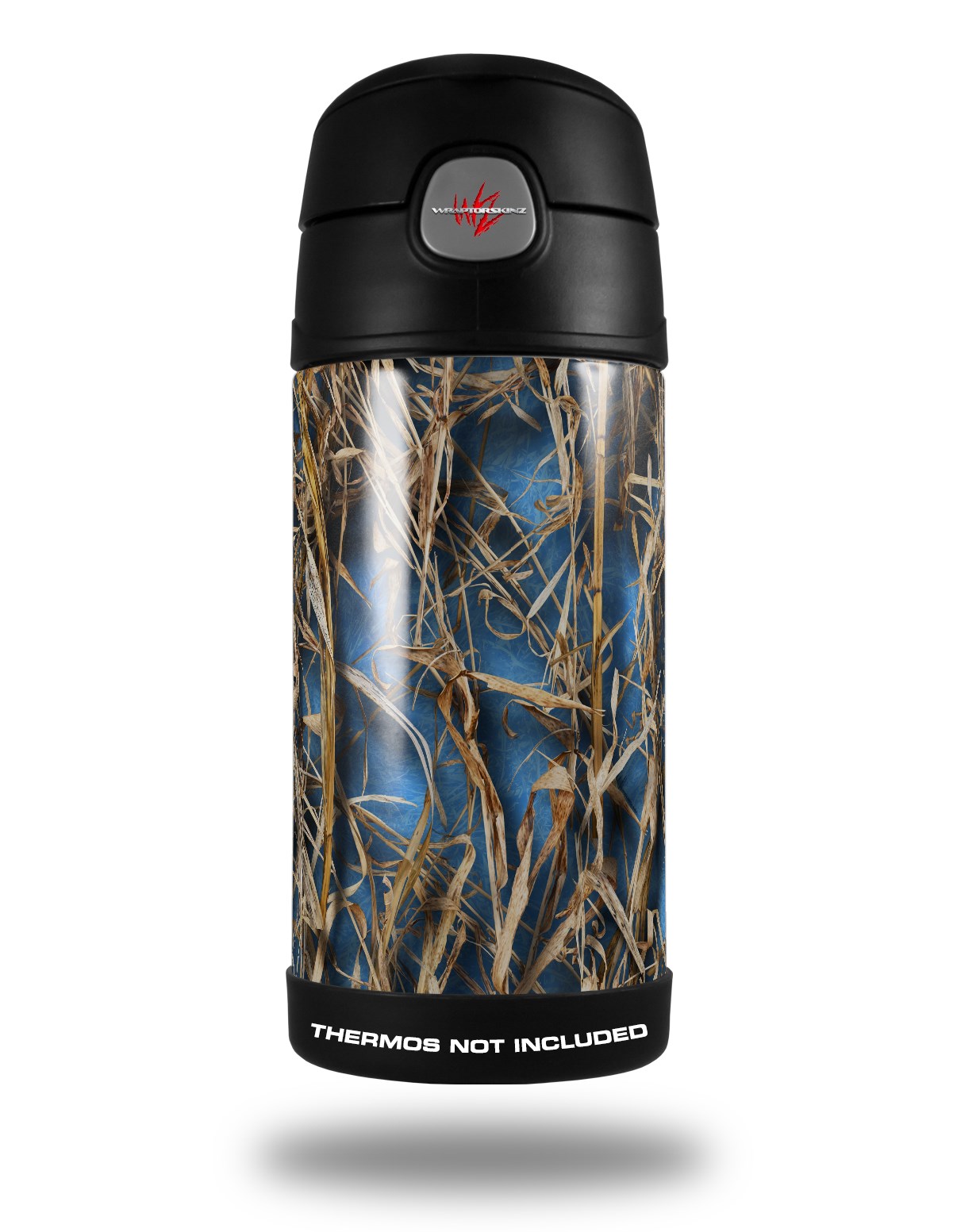 Skin Decal Wrap for Thermos Funtainer 12oz Bottle WraptorCamo Grassy Marsh Camo Neon Blue (BOTTLE NOT INCLUDED)