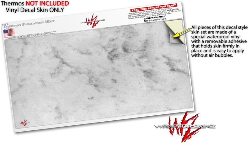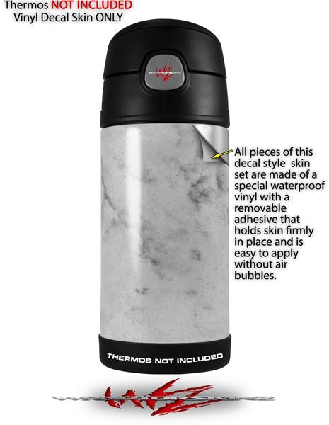 Skin Decal Wrap for Thermos Funtainer 12oz Bottle Marble Granite 07 White Gray (BOTTLE NOT INCLUDED)