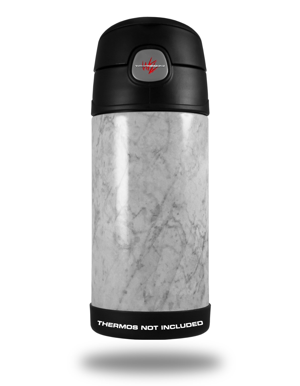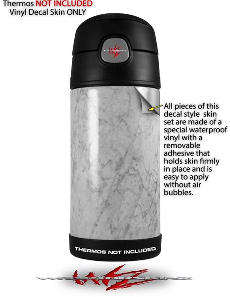 Skin Decal Wrap for Thermos Funtainer 12oz Bottle Marble Granite 09 White Gray (BOTTLE NOT INCLUDED)