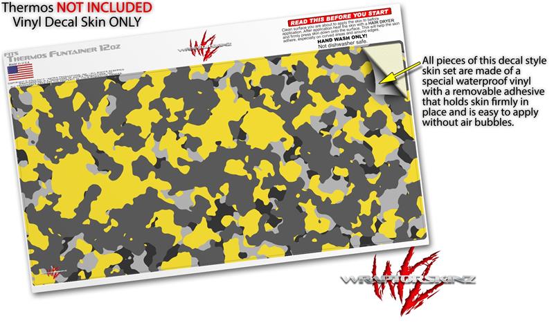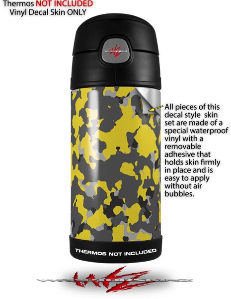 Skin Decal Wrap for Thermos Funtainer 12oz Bottle WraptorCamo Old School Camouflage Camo Yellow (BOTTLE NOT INCLUDED)