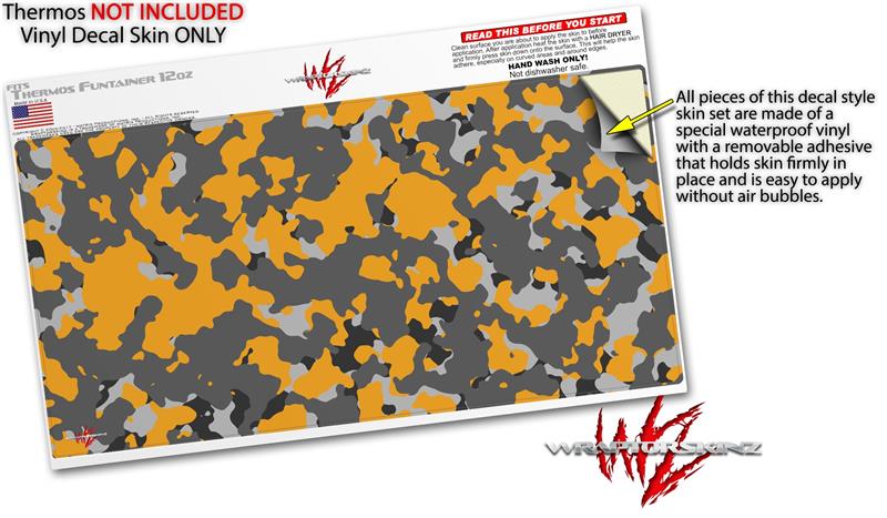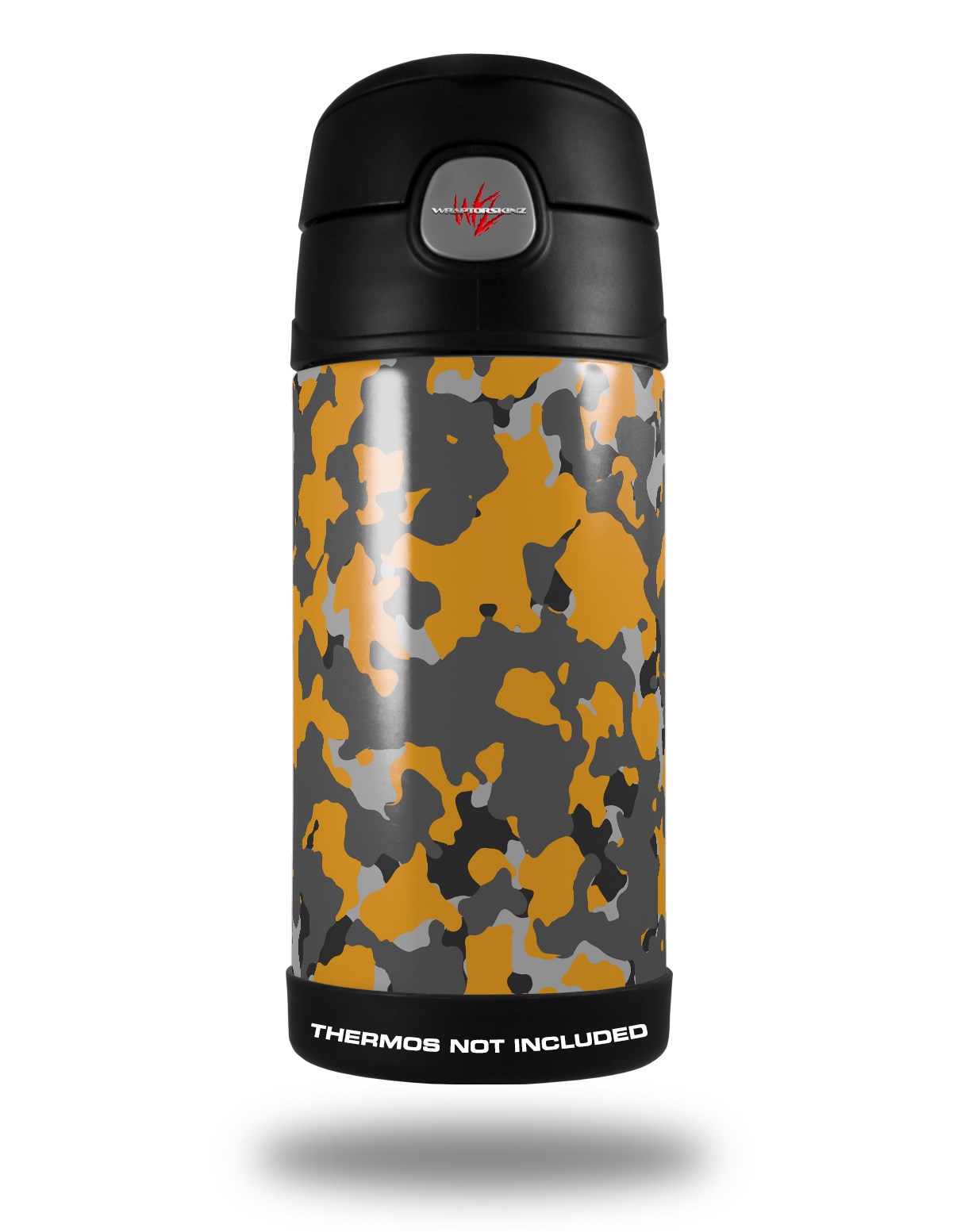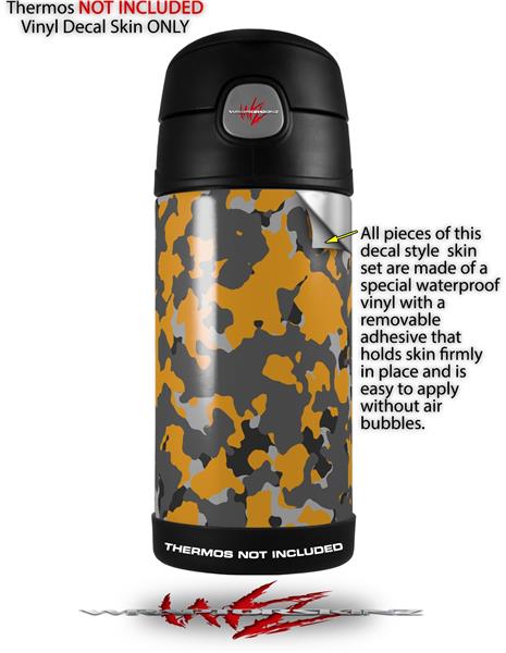 Skin Decal Wrap for Thermos Funtainer 12oz Bottle WraptorCamo Old School Camouflage Camo Orange (BOTTLE NOT INCLUDED)