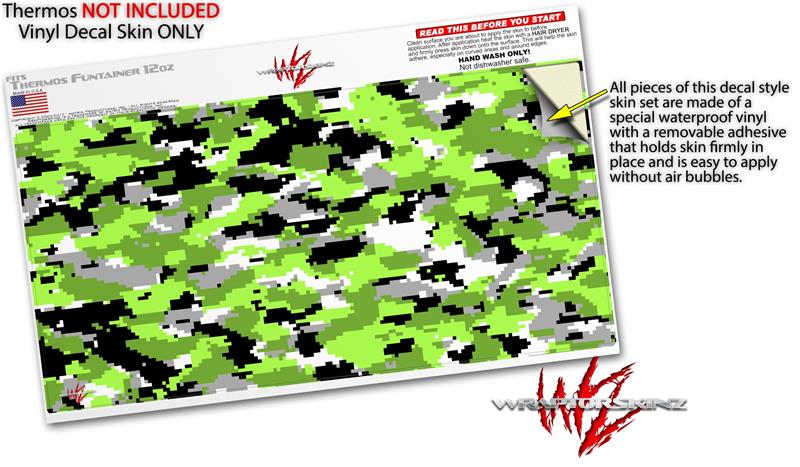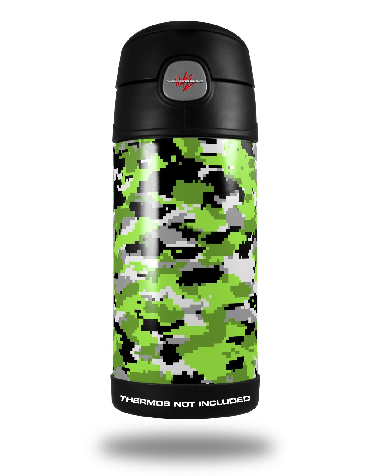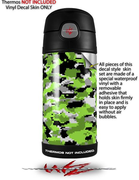 Skin Decal Wrap for Thermos Funtainer 12oz Bottle WraptorCamo Digital Camo Neon Green (BOTTLE NOT INCLUDED)